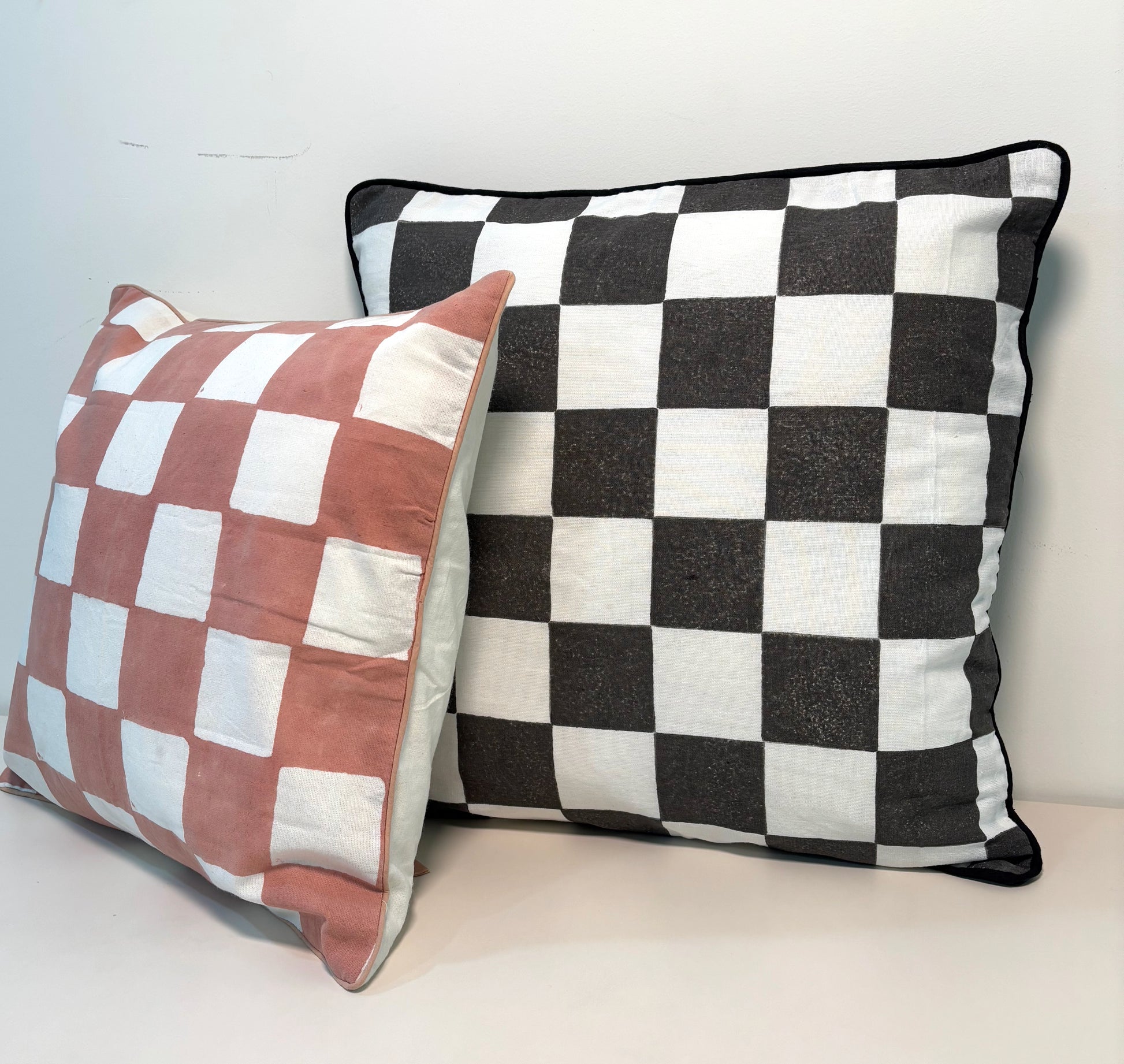 Classic Checks Cotton Block Printed Cushion Cover l Black & White