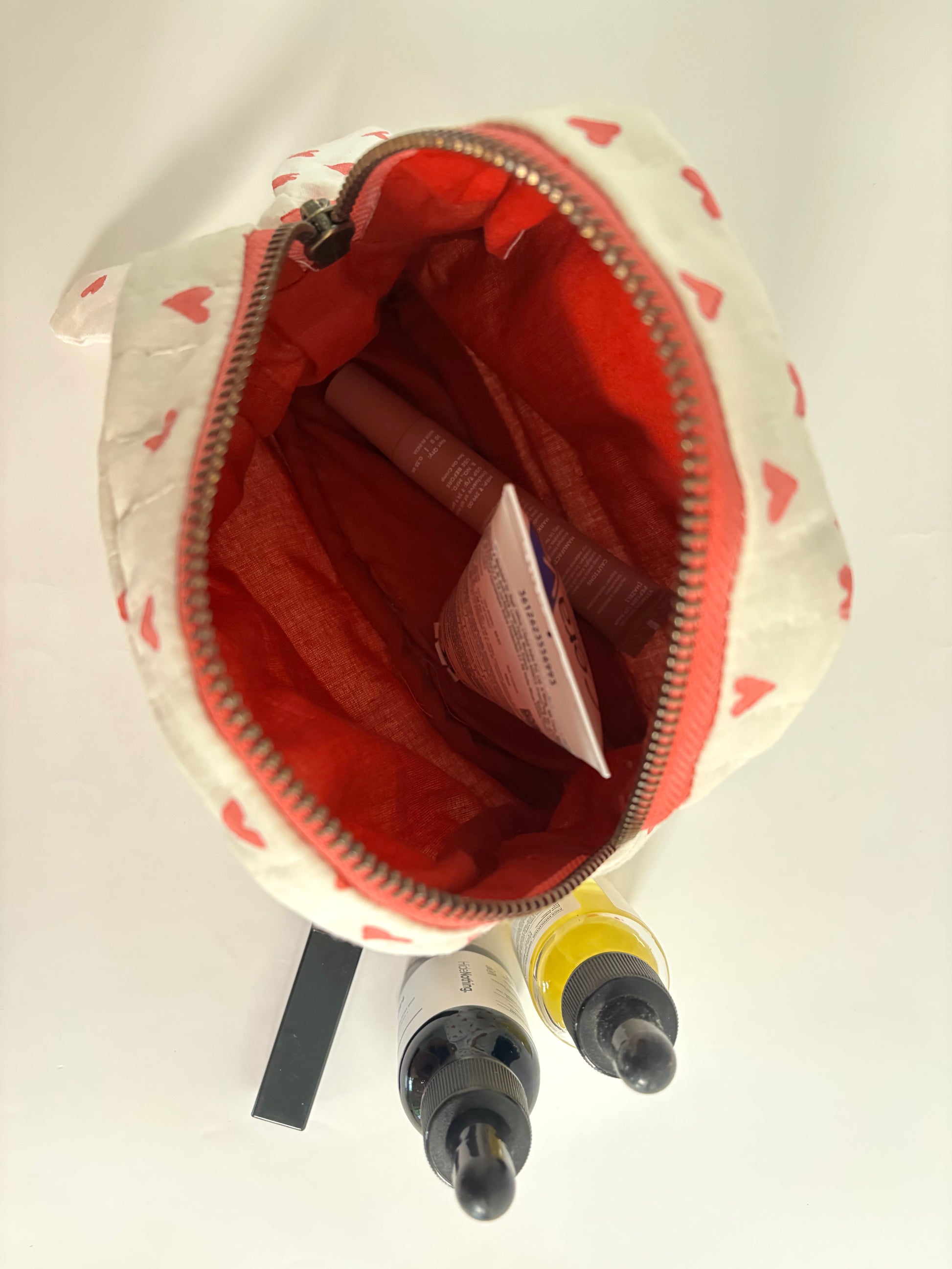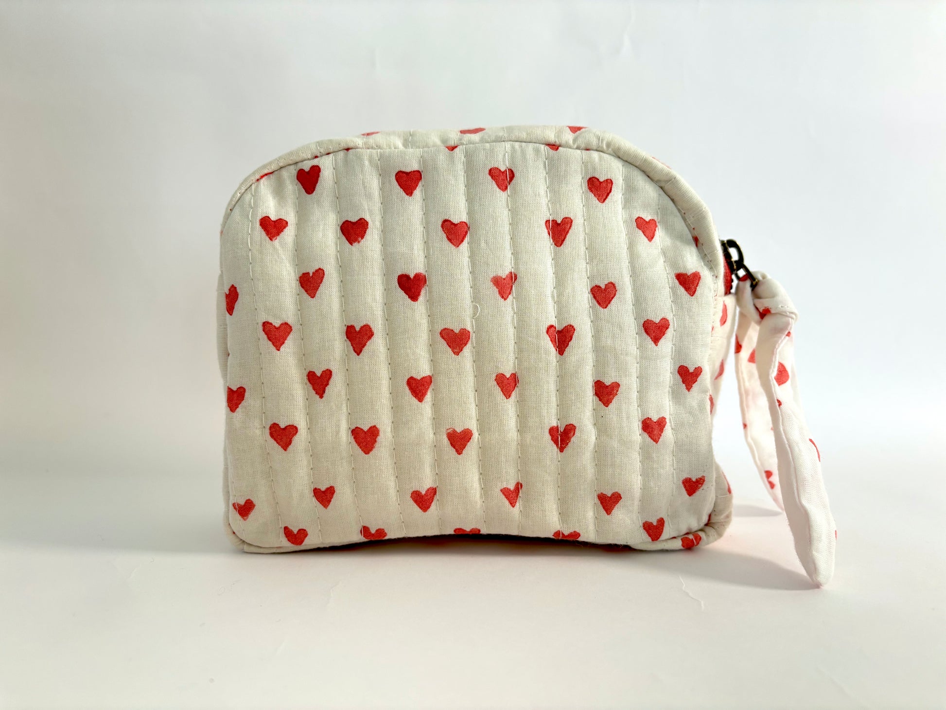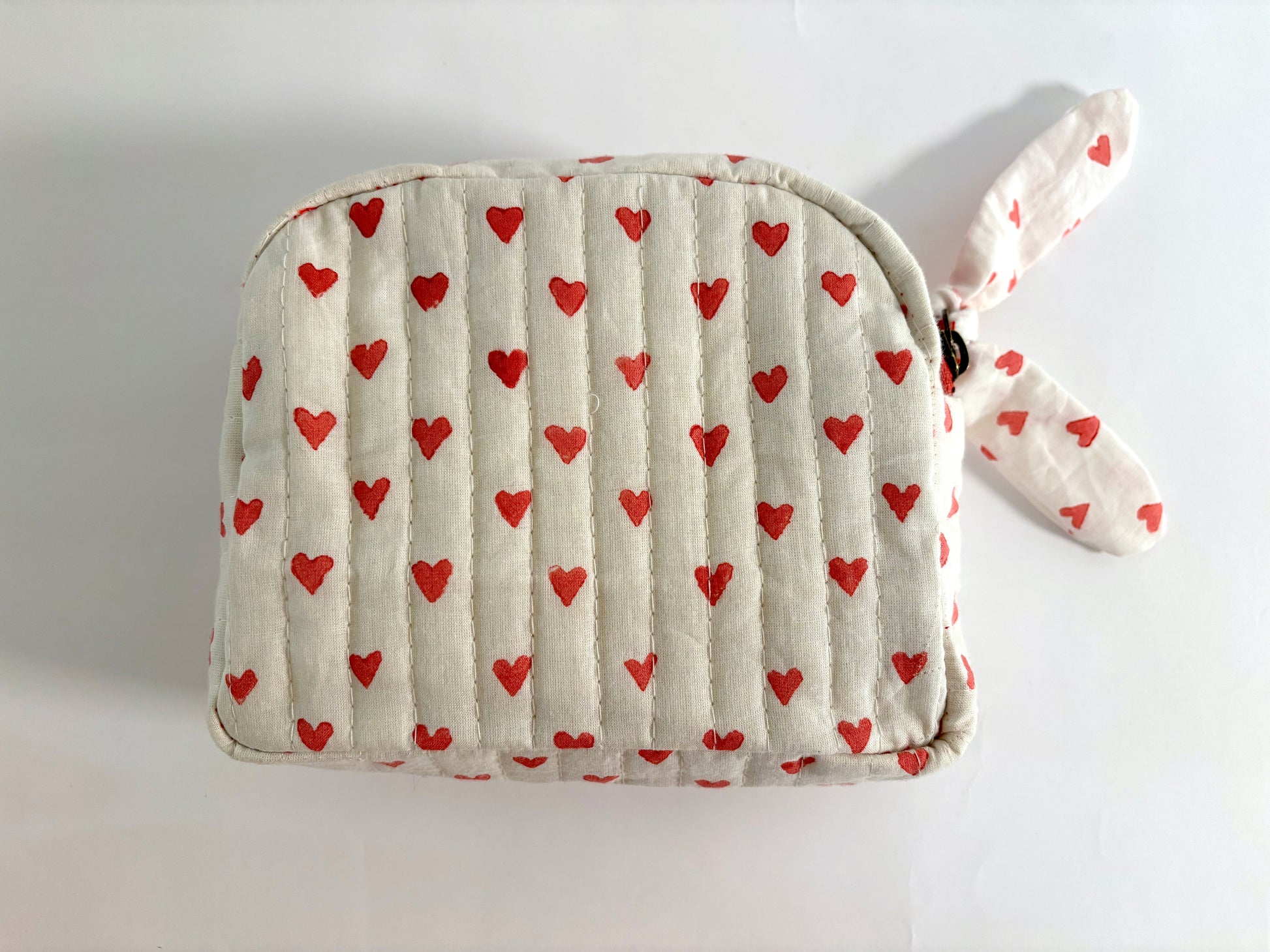 Sustainable Quilted Cotton Travel Organiser l The Classic Pouch l Red Hearts on White