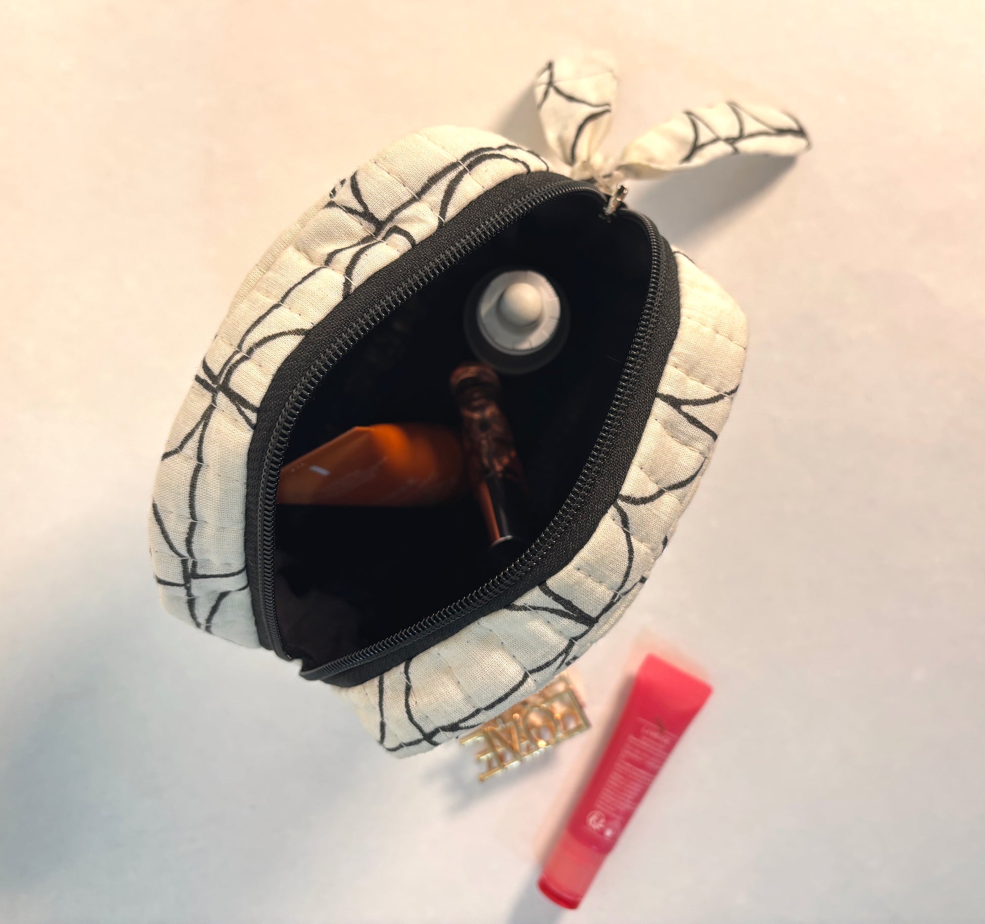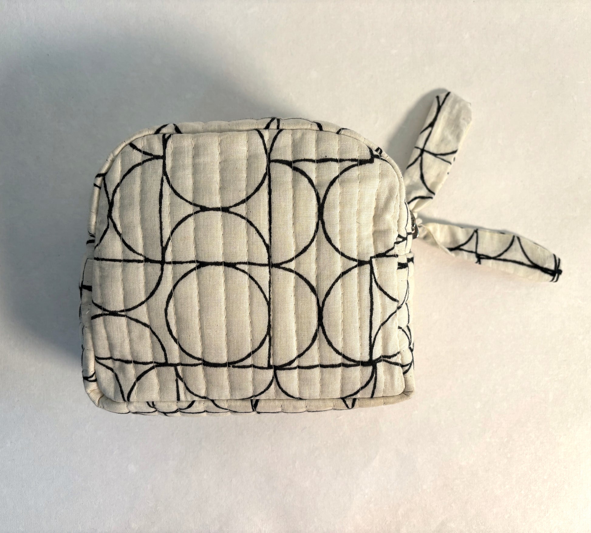 Sustainable Quilted Cotton Travel Pouch l Black & White Organizer